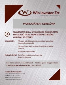 Win Investor Zrt. | 5000 Szolnok, Kolozsvári utca 3/A | Nyitvatartás: H-P 9-17.00 | +36/56/413-086 | info@wininvestor.hu | Nyilv. szám.: B/2020/000489, Eng. szám: E/2021/000132